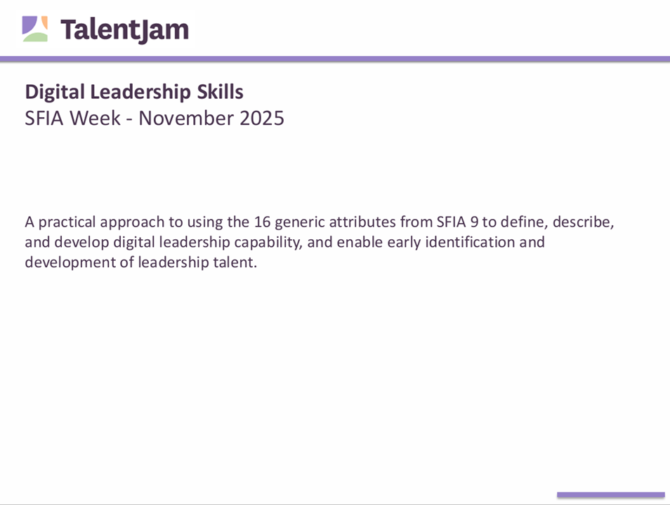 It will demonstrate how SFIA can be embedded into key workforce management activities such as attraction, recruitment, onboarding, performance management, career development, and succession planning. You will learn how to activate SFIA progressively, avoiding the pitfalls of a “big bang” approach, and instead focusing on high-impact areas like skills gap analysis and targeted learning to address the journey of transformation driven by AI