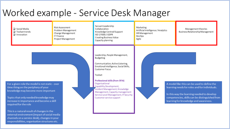 A model like this can be used to define the learning needs for roles and for individuals.