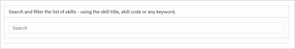 To address this, we have added a search box that allows you to search for a skill title, skill code, or any keyword. This keyword search will typically return several suggestions for you to select from.