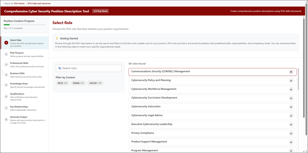| Interactive tool - SFIA skills-based position description - Cybersecurity roles | Based on collection from NICE, ENISA, UKCSC. | ||