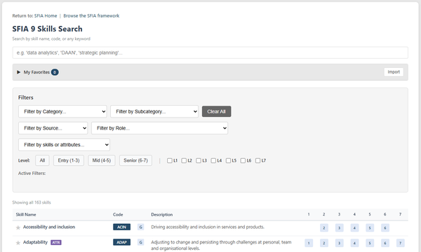 Interactive SFIA 9 skills search